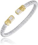 > Sterling Silver & 14ky 0.09ct tw G, SI Diamonds 4mm rectangular end open cuff bracelet by Vahan