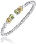 Sterling Silver & 14ky 0.12ct tw G, SI Diamonds & oval Peridot 3mm cuff bracelet by Vahan