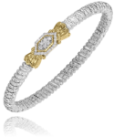 Sterling Silver & 14ky 0.20ct tw G, SI Diamonds 4mm bar bangle with hidden clasp by Vahan