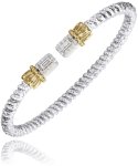 Sterling Silver & 14ky 0.37ct tw G, SI emerald cut with surrounding Diamonds 3mm open cuff bracelet by Vahan