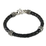 > Sterling Silver wave design black leather 9" bracelet by Zina.