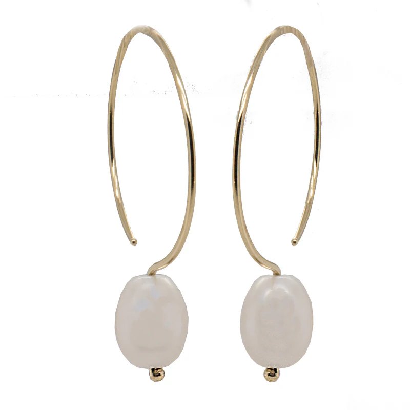 14ky two 7 mm. white pearls JBG 25 mm. hoop earrings
