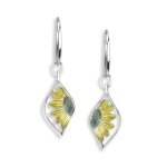 > Sterling Silver sunflowers enamel french wire earrings made by Nicole Barr.