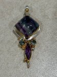 Sterling SIlver 22K gold vermeil faceted marquis cut African Amethyst, faceted round delicious topaz, 14.5mm x 14.5mm polished Fluorite pendant byu Michou.
