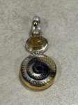 Sterling Silver 22K Gold Vermeil Etched Mother of Pearl and Rutilated Quartz Pendant by Michou.