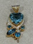 Sterling Silver 22K Gold Vermeil heart, round, marquis faceted Blue Topaz fancy bail pendant by Michou.
