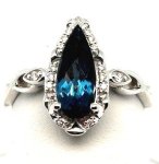 > 14K W .08ctw elongated pear shape London Blue Topaz with 0.08ct tw Diamond accents ring, size 7