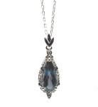 18" 14K W faceted elongated pear London Blue Topaz .07dtw diamond pendant/necklace