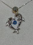 18" Sterling SIlver 22K gold plated Porpoises making heart penant on box chain by Michou.