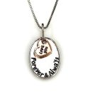 18" Sterling Silver forever and always disc with rose gold love you heart necklace.