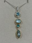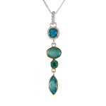 18" long 22K gold vermeil sterling silver Apatite, Amazonite + Mother of Pearl + Quartz triplet, Baby Blue Topaz, Sky Blue Topaz necklace by Michou.