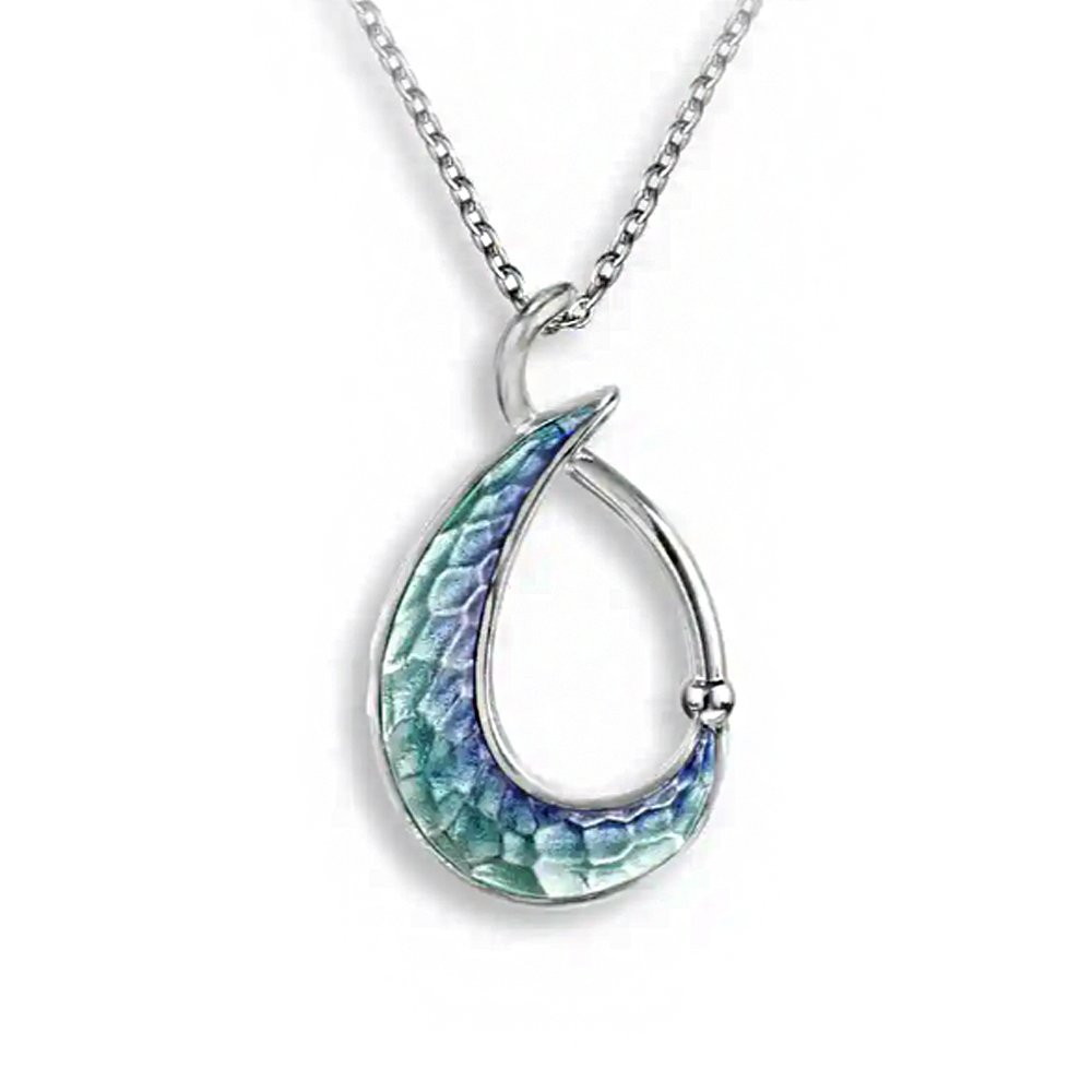 > 20" adjustable Sterling Silver Blue Green Purple enamel wave Teardrop necklace by Nicole Barr.