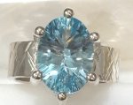 Argentium Sterling Silver prong bezel 7.09ctw 14.02 x 10.6 x 6.68mm commercial concave cut oval Sky Blue Topaz band crosshatch ring size 7 made by Randy Snider
