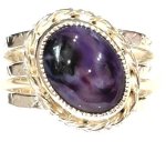 Argentium Sterling Silver rope bezel 13.78 x 10.04 x 4.98mm Charoite Triple Band crosshatch ring, size 7 made by Randy Snider
