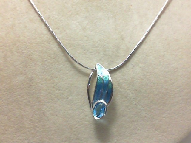 "BLUE TOPAZ LEAF ADJUSTABLE" 18" s.s. blue turquoise enamel with blue topaz leaf motif adjustable necklace by Nicole Barr