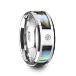 HONOLULU 8mm Mother of Pearl Inlay Tungsten Carbide Ring with Beveled Edges and White Diamond, size 10